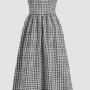 ชุดเดรสกระดุม บล็อกสี ลายสก๊อต หรูหรา สําหรับผู้หญิง