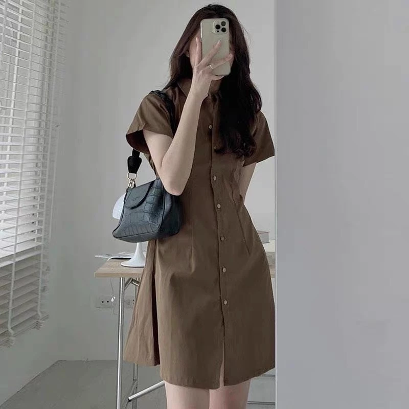 ชุดเดรสแขนสั้นคอปกโปโลสไตล์เกาหลี เหมาะสำหรับการทำงาน